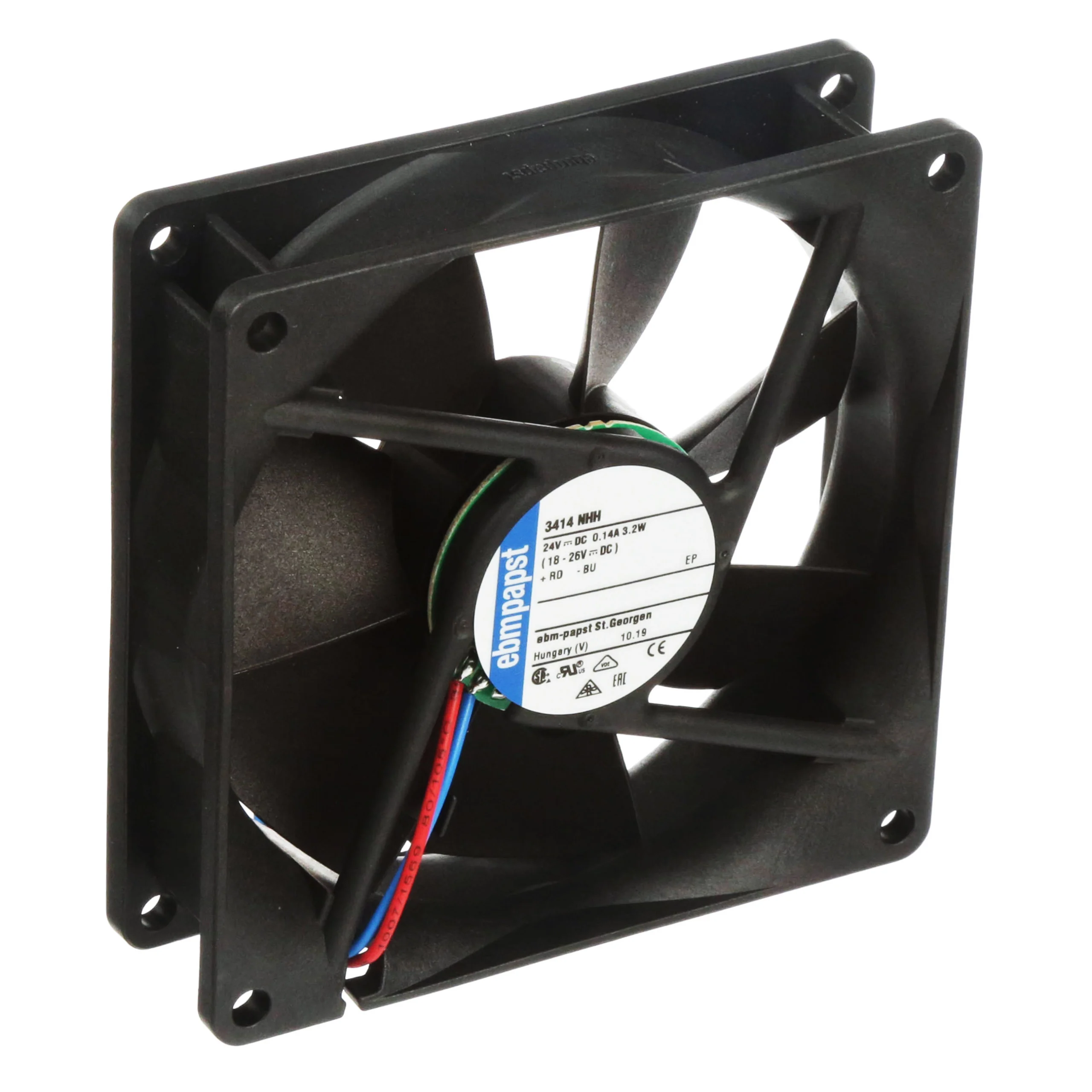 ebm-papst 3414NHH DCファン24V 92x92x25mm 60CFM 3.2W 39dBA 3250RPMリード線